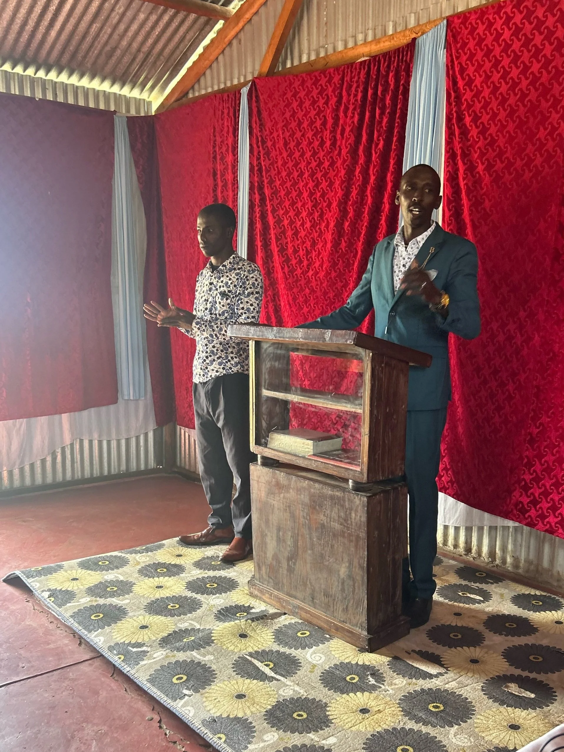 Tyler encouraging the local pastors. Pastor Garaing sharing with the group about what God is doing in Nairobi.